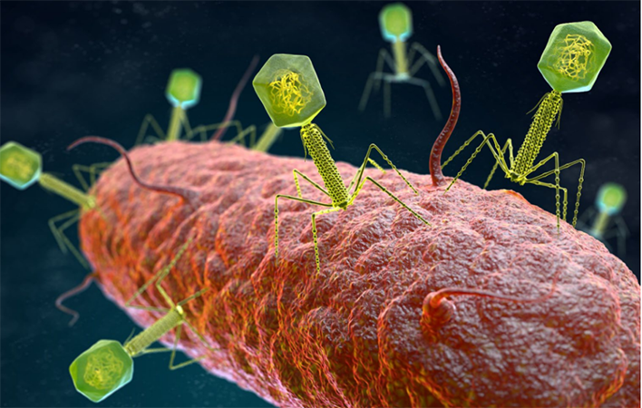 Bacteriophages attacking a bacterium